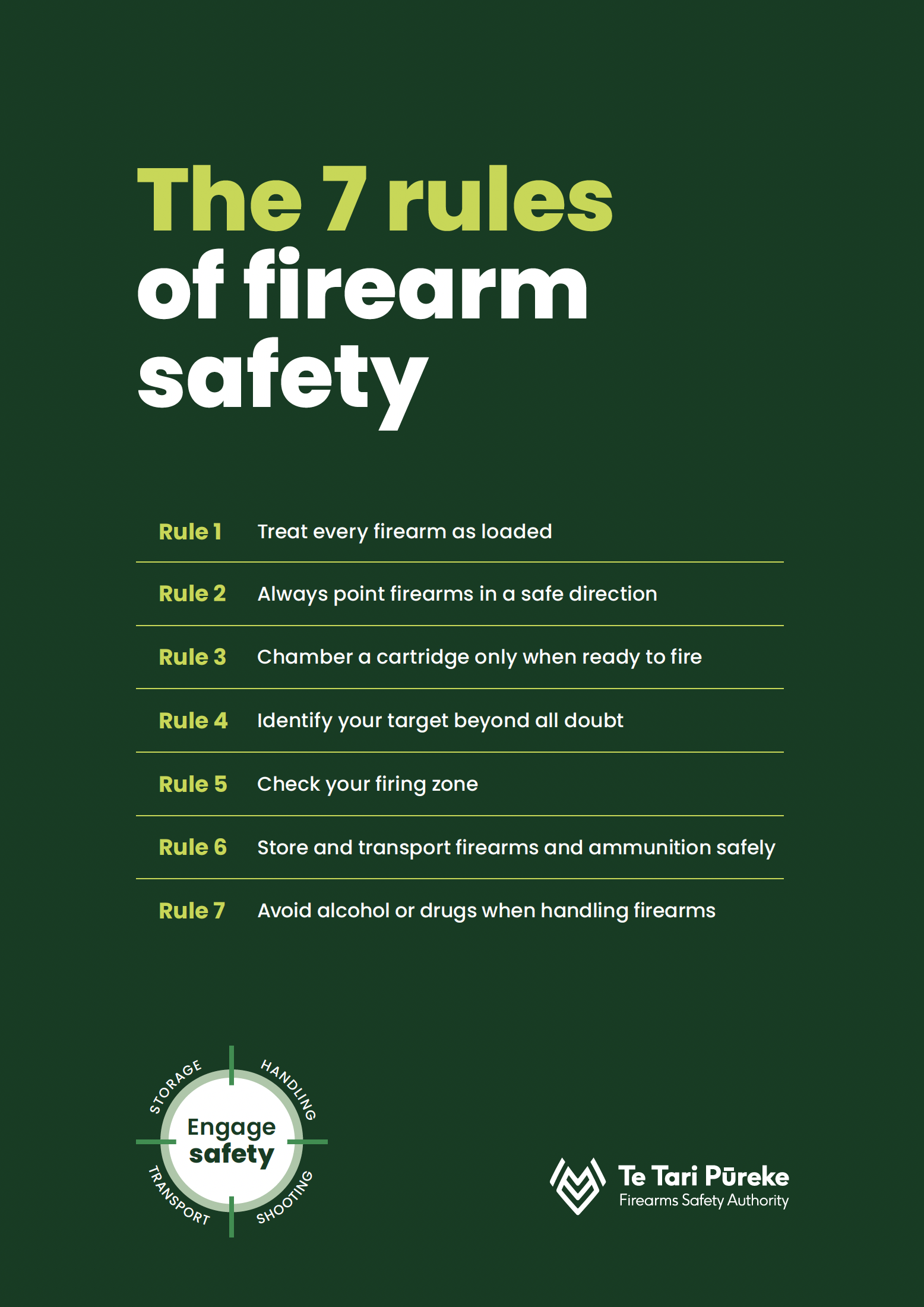 View changes here: https://www.firearmssafetyauthority.govt.nz/firearms-safety/7-safety-rules