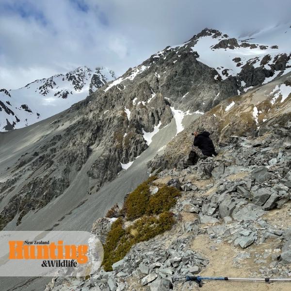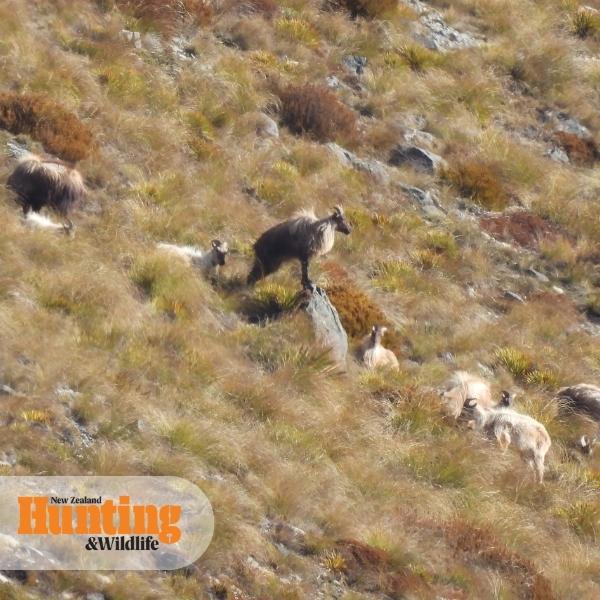 It wasn’t long before we spotted our first animals. We moved up into a thicket of matagouri on the valley floor that offered us some much-needed cover and allowed us to assess them without being noticed. We remained there for a few hours as animals came and went. I was in awe as these large animals sprang across seemingly impossible gaps onto the tiniest of ledges with little effort.