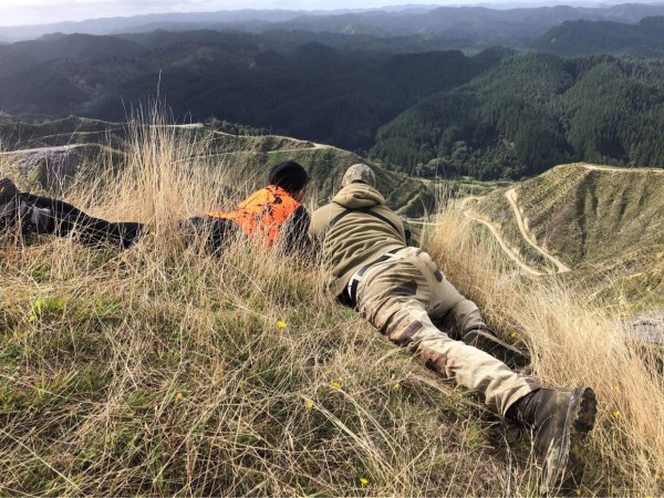 When it was my turn, to go out for a hunt. I was prepared, and thought we would be tramping for hours, but fortunately we had a quad bike, and the instructor had a good idea where the deer would be hanging out. We had several attempts at stopping to find them without any luck. I have to say, tracking the deer was very insightful, we spotted a doe in the bracken from the top of a ridge and commando crawled carefully down the ridge and lay prone. The doe was about 100 metres away, her head was visible, along with the back however it wasn’t a good shot as recommended by the instructors. So, we waited for the doe to move, and it seemed like an eternity. Lying still, the sun was baking my face and my position was quite uncomfortable, but I stayed as still as I could and patiently waited for the doe to move.