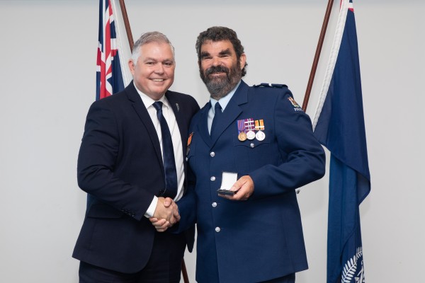 Pictured above: Roger Bright's Service recognised by Police Minister Mark Mitchell