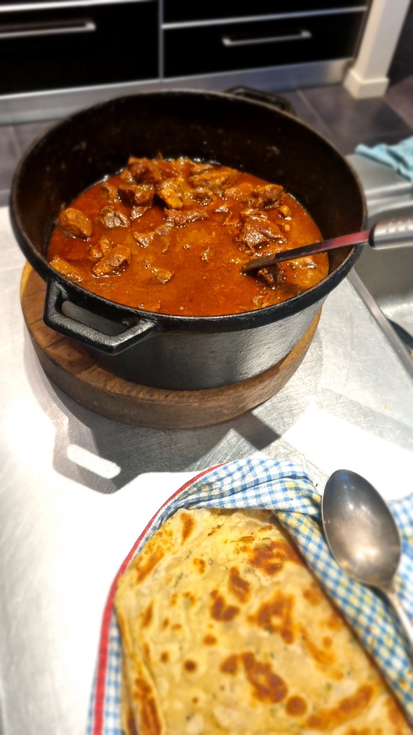 - When it has been cooking for a few hours, do a taste check. To balance out the spice of the curry (sour, sweet and salty) add either more vinegar or sugar/tomato sauce or salt to your liking
