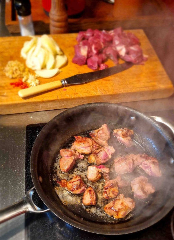 This is a fool-proof recipe for cooking goat curry that you can adjust to your taste. The key is cooking it for a few hours on low and then adding ingredients to balance flavours to your taste, as well as adding butter/oil to add richness to your wild game meal (according to the fatiness of your goat).