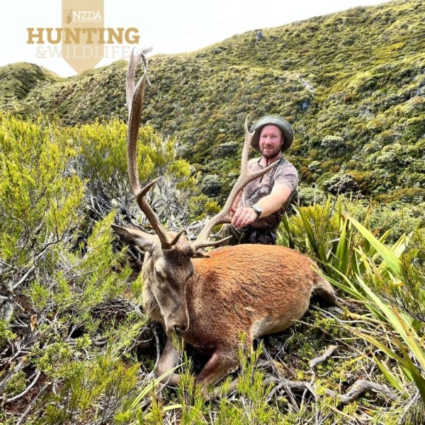 Lucas was sitting on the other side of the ridge when the peaceful silence of glassing was interrupted by his whispered urgency: “Quick, grab your rifle!”. Instantly obliging, I popped over to his side of the ridge where a big-bodied stag was visible with the naked eye a few hundred metres away up a scrubby gut. Through the binos, we could see he was a mature 10-point stag with reasonable length, probably a good representative of the area. While the initial excitement was perhaps a little premature, mainly due to him being out of range for both of us, we decided he was worth a closer look, as there was an easy stalk to get within very close range of him. We were able to sidle around a face and tuck behind a small knob that the stag had fed its way up and disappeared behind. We covered the ground to well within 100m of him and Lucas suggested he may have already fed through to being right underneath our feet. He was right. The next corner we came around, he was standing in clear sight, fully aware of our presence, about 80m away. Being in front and carrying my rifle, I decided to take the shot feeling confident and freestanding at close range. The shot hit low in the shoulder; he ran a short distance and stopped on the edge of a small, terraced ridge that he could have continued over, so another shot was taken in the neck, which crumpled him into the small gully below us.