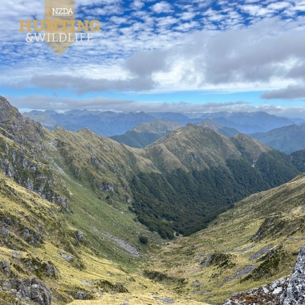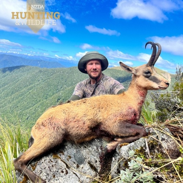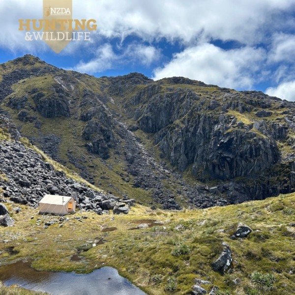We woke to a bit of clag the next morning, which gave us a chance for bacon and eggs and to sort gear before setting out to fly camp along the northern part of the range. It was so nice to be camped up high and just off the long leading ridges, allowing great access to all the major basins. We spent the morning slowly opening up new country to the north, picking up a few more animals, but nothing to get excited about. We were not mentally prepared for how hot it is hunting on crystal clear days in the February sun. This saw us scrambling for any shade or breeze possible through the middle hours of the day and having to be quite strategic about water management heading into new areas where it wasn’t guaranteed. That afternoon, we picked up a few more chamois does with kids, a potential lone buck, and the first two deer for the trip - a hind and a yearling on the bush edge of another head basin.