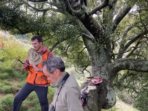 We headed back and spotted a small group of goats across the valley. Alex who is known for making a powerful goat curry stated he was keen to take them. He got prone, got the rifle stable, ranged them at 170m and squeezed the trigger. Clean hit! “I went to say “great work man” but was drowned out by the report of the .308 going off again - Alex really had it in for those goats… another clean hit and kill. It took us about an hour to walk back to the bridge to cross over to the other side of the valley. Once we found the animals, Alex got to work butchering them using his recently acquired HUNT course skills.