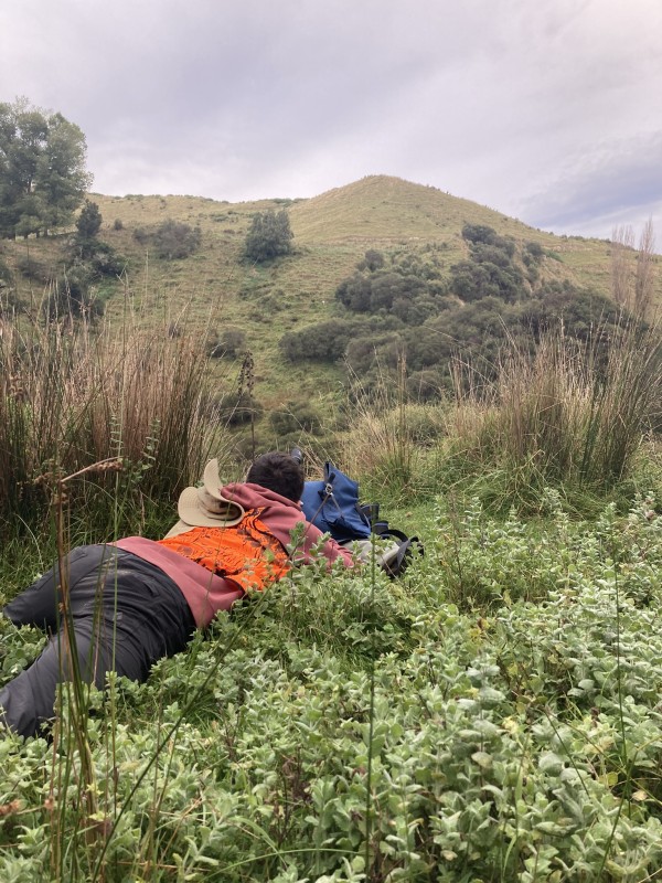 The somewhat spread-out convoy of vehicles made its way up the West Coast through Whanganui before taking a gravel road up to the station we were to hunt. Driving along the 30km gravel road we smelt something in the air, looking to our right we could see that the top of the hill was on fire. We stopped to have a quick look before continuing on, hopefully it wasn’t a bad omen for the weekend.