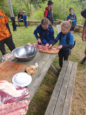 The weekend peaks with a sheep being slaughtered, a butchery workshop is held to teach them how to break down an animal and explain where meat comes from. It’s served for dinner on the final night.