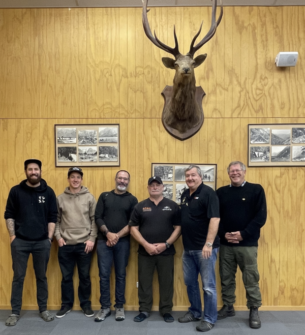 Photo L-R: Jamie Slade Upper Clutha Provisional HUNTS Instructor, Alex Sharples Upper Clutha Provisional HUNTS instructor, Scott Gillam Upper Clutha Assessor, Mike Spray NZDA National Program Manager (HUNTS) course coordinator, Ian Brabbs North Canterbury Assessor, Frans Laas North Otago Assessor. (Not Shown) Darin Grenz North Canterbury Range Officer