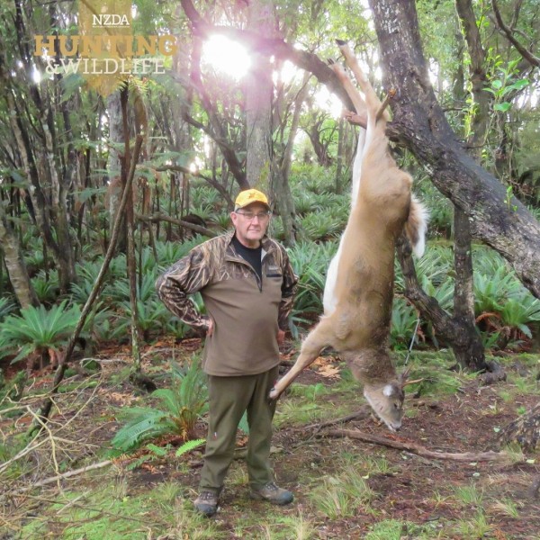 We went on a little further, and Mike pointed out the scrape where he had a trail camera set. A buck had visited and could be seen mouthing the foliage overhanging the scrape. I left Mike a little later to head over to Murray’s spot. He was having a night off, and I thought I might get a look at the camera buck. Just before dark, I heard Mike shoot, and after a few whistles to each other, I caught up with him and the evidence of a solid hit, but by this time, it was as dark as the inside of a tunnel. Headlights on, we couldn’t find the deer in the ferns where he said he had heard it. He said it was a young animal, and I was so pleased it was not the buck, and I felt guilty about intruding on Murray’s territory. I checked the trail camera as we left and saw the same buck had been passed at 11.30pm the previous night for the fifth time. The following morning, four of us went back, and after some fruitless searching in the ferns, we found the dead yearling in the area's most open piece of bush.