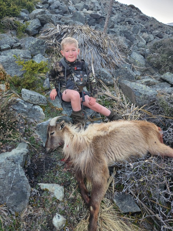 Blake is an enthusiastic and unbelievably energetic member of our branch , since joining 3 years ago at the young age of 7, he has been on numerous club hunting trips, The most memorable ones for me are hunting goats in the Macetown area, a steep and rugged mountainous area and he was on his feet for over 8 hours hiking with his dad and other members. The secret I have been told is to feed him often and have lots of stops. Other members found this terrain tough and were exhausted back at camp but Blake was keen to run errands: fetch the beers, fill water bottles and keep the adults entertained.